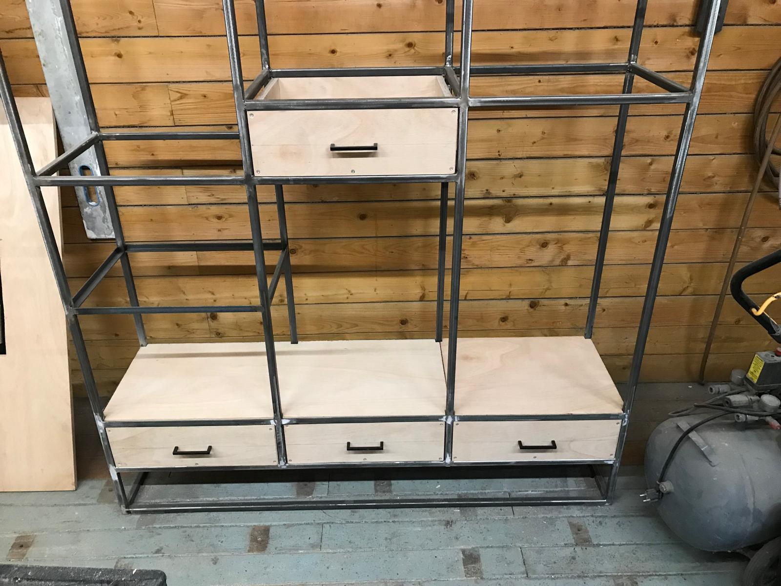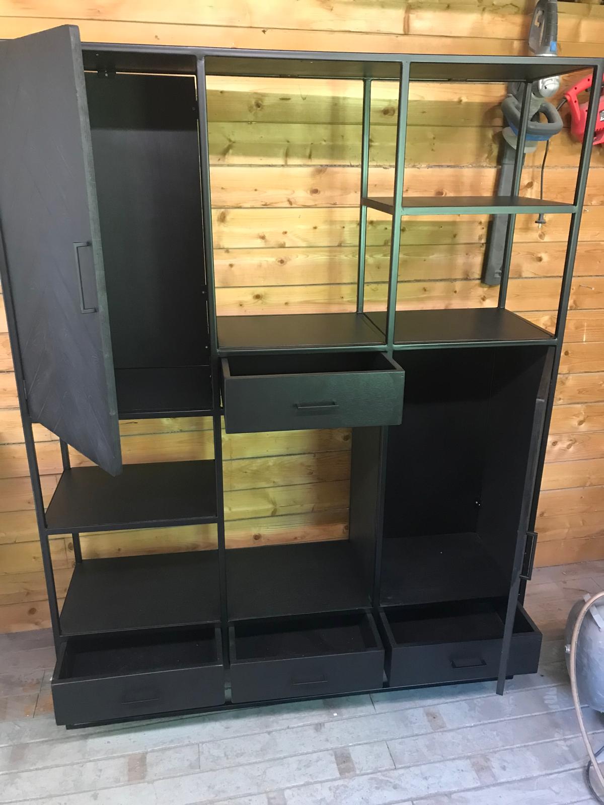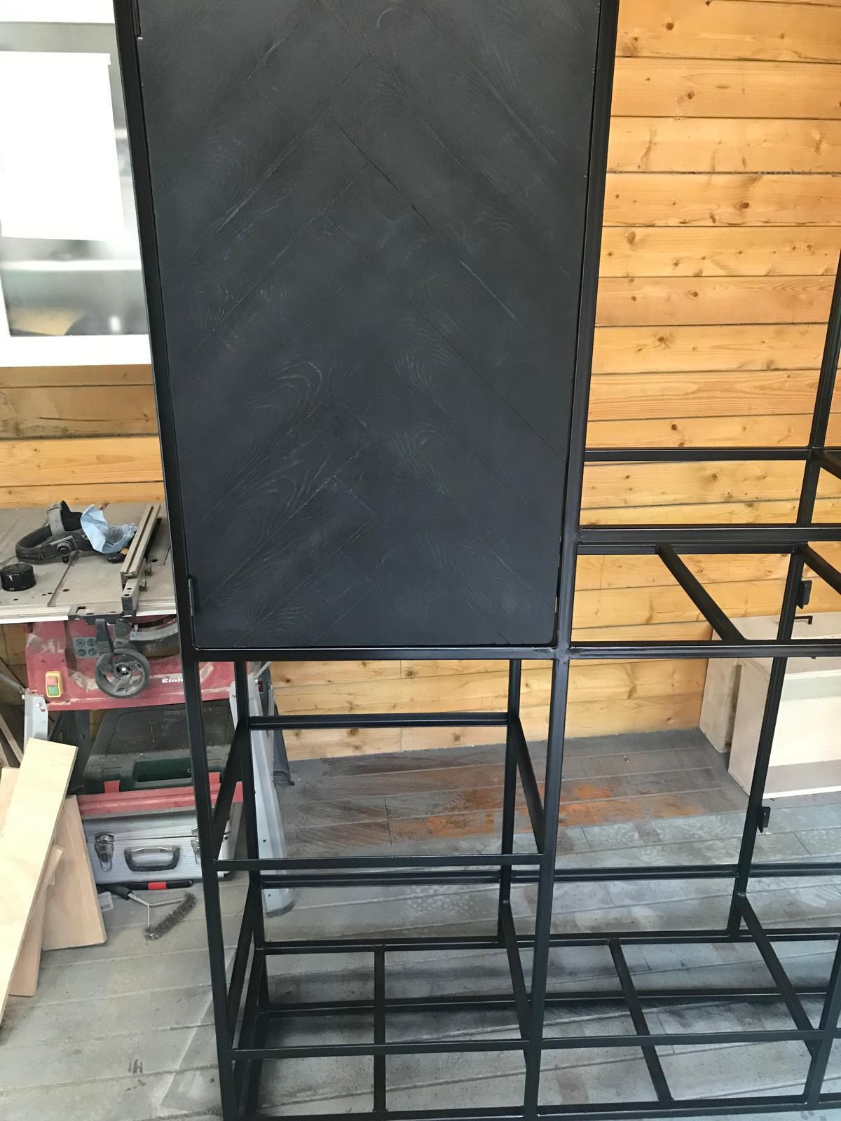 Bij VBL Visser Black Label werken we graag aan maatwerk kasten die perfect passen bij uw interieur en wensen. Voor en na foto's van ons vakwerk tonen duidelijke transformaties: van een metalen kaal frame naar een stijlvolle kast. Met aandacht voor detail en gebruik van hoogwaardige materialen zorgen wij ervoor dat elke kast een persoonlijke en functionele toevoeging aan uw huis is.