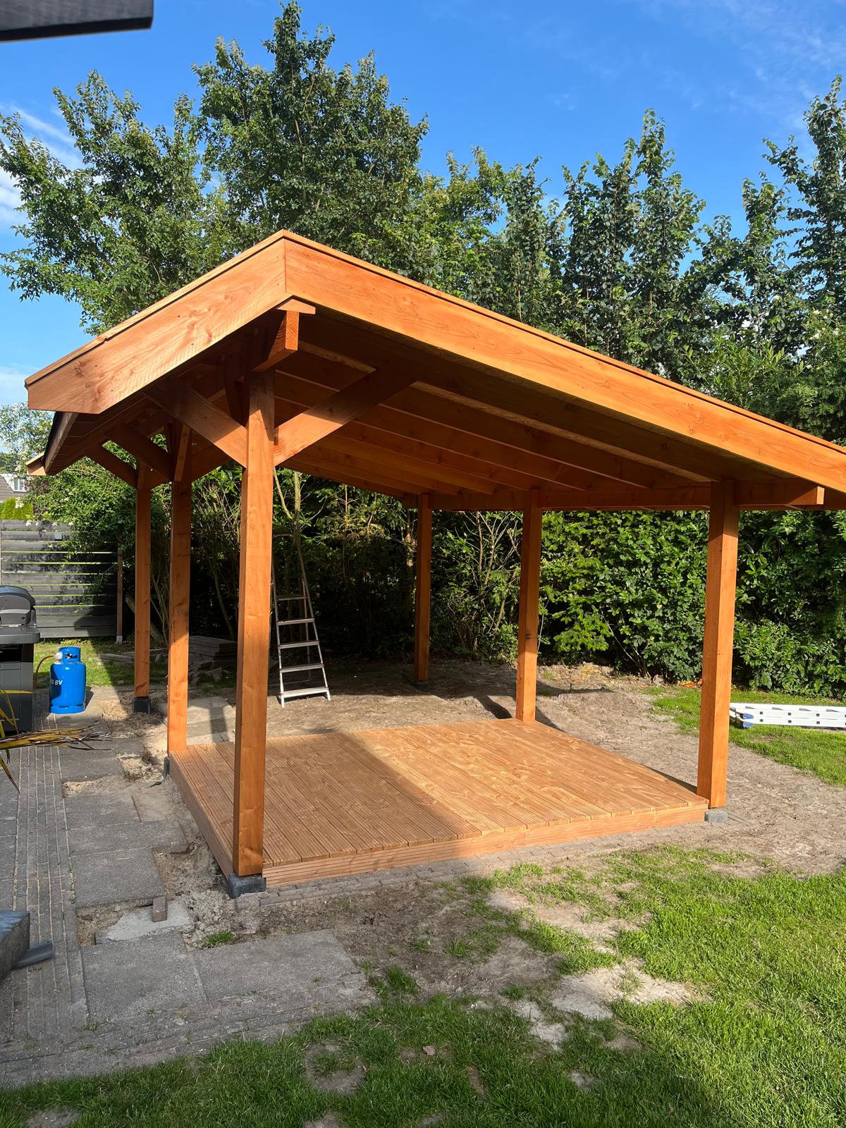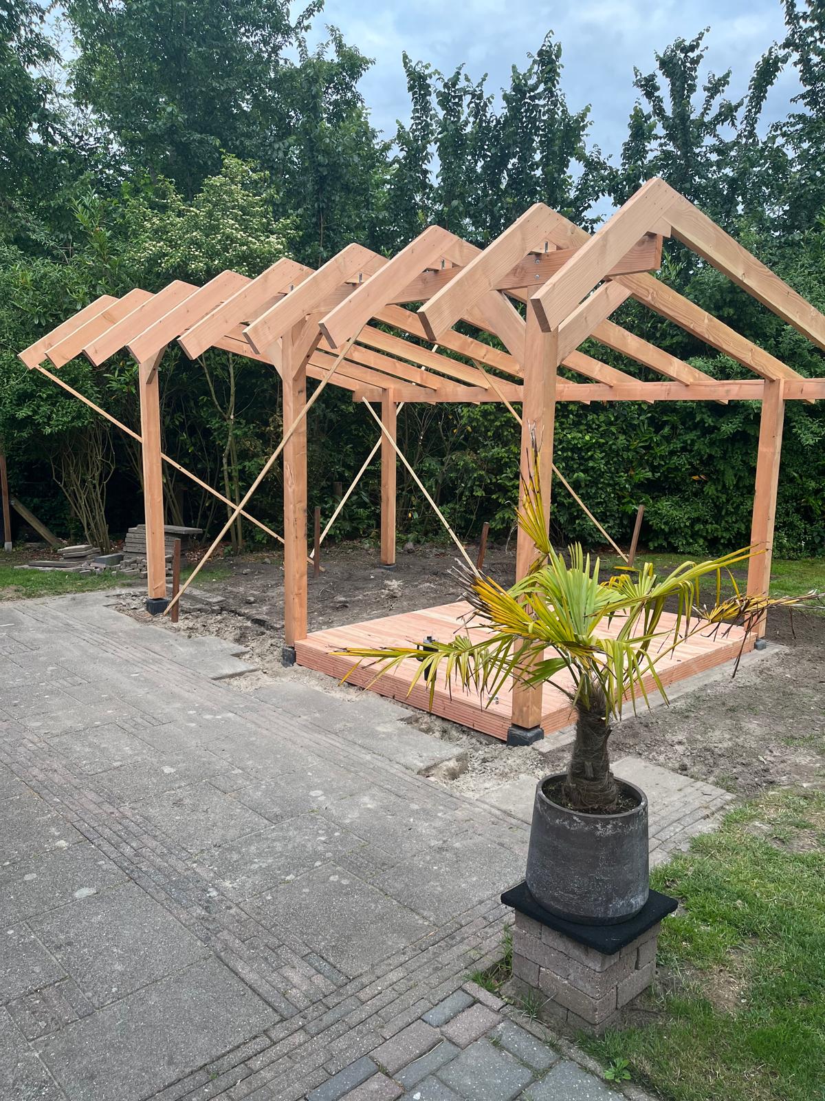 Een belangrijk onderdeel van ons werk zijn de voor en na foto's, die de transformatie van uw buitenruimte prachtig in beeld brengen. Deze beelden laten niet alleen de kwaliteit van ons werk zien, maar ook de sfeer die een op maat gemaakt tuinhuis of overkapping kan creëren.